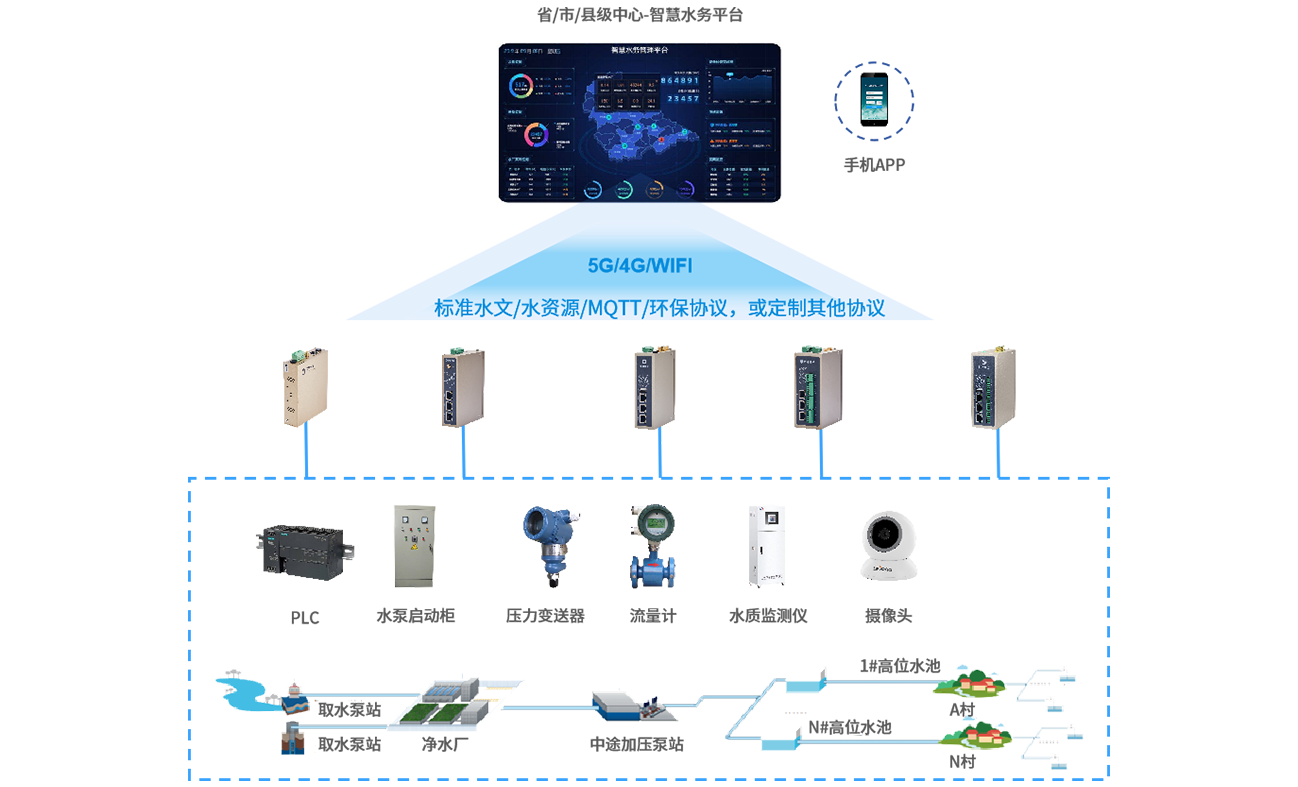 在城乡供水系统的各个关键节点(如水源地、水厂、泵站、管网等),顺利获得777盛世国际的工业智能网关采集供水数据(如水量、水质、压力等)。将采集到的数据传输至城乡一体化供水信息化管理平台,平台对数据进行全面分析和处理。实时监测水质情况,根据用水量和管网压力进行优化调度,在出现紧急情况时保障应急供水。同时,平台具备用户服务管理功能,可处理用户投诉和查询,顺利获得数据分析控制运营成本。