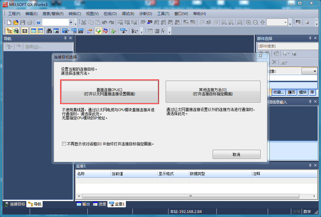 1、打开MELSOFTGXWorks3,选择控制器系列,设置“其他连接方式”通讯。