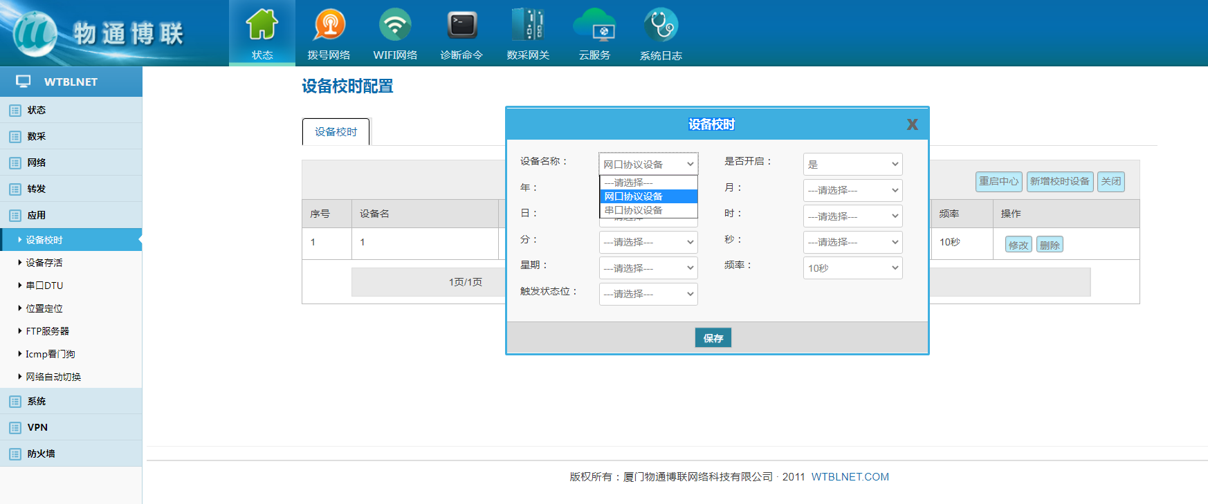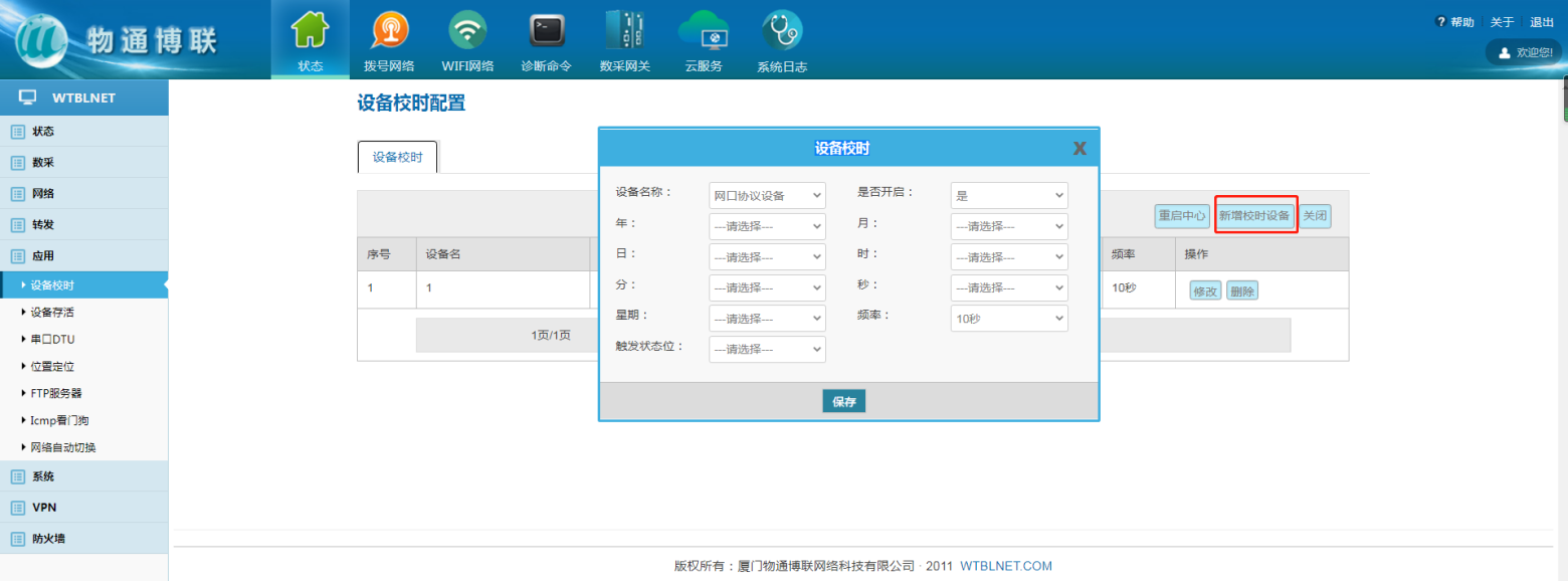 设置步骤:应用---设备校时---新增校时设备---开启---重启中心
