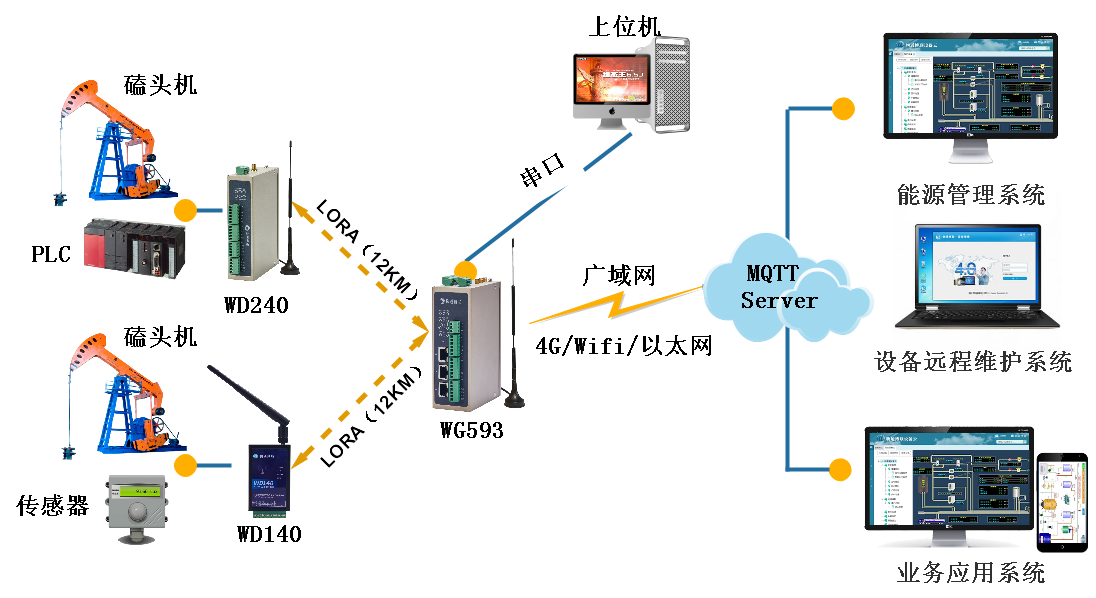 顺利获得777盛世国际的两化融合和边缘计算网关采集油田内的设备数据,并在网关内实现边缘计算和数据标准化后将数据上传给云平台,实现对油田的实时动态监测为生产操作和管理决策给予准确的数据依据,全面提升安全管理水平,支持顺利获得云平台、手机移动端和电脑客户端实现油井设备远程运维和现场数据实时监控。